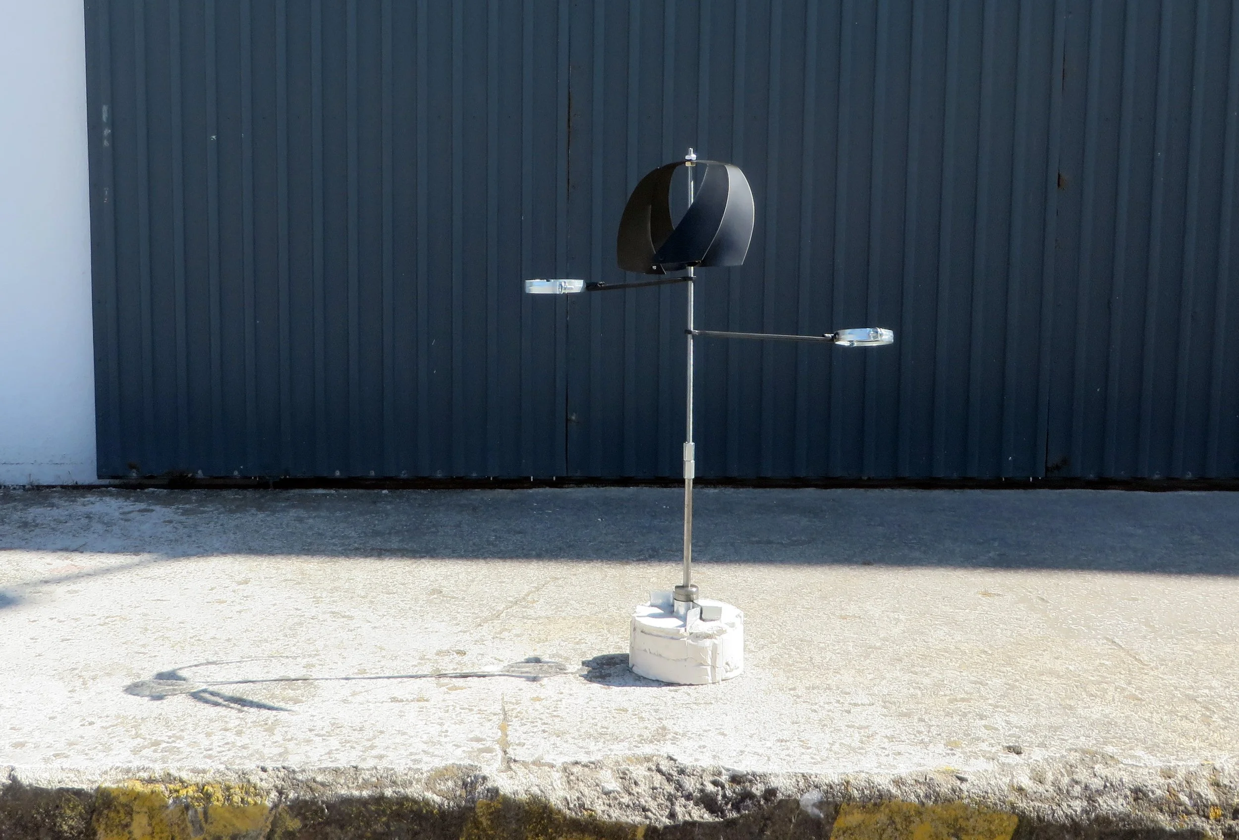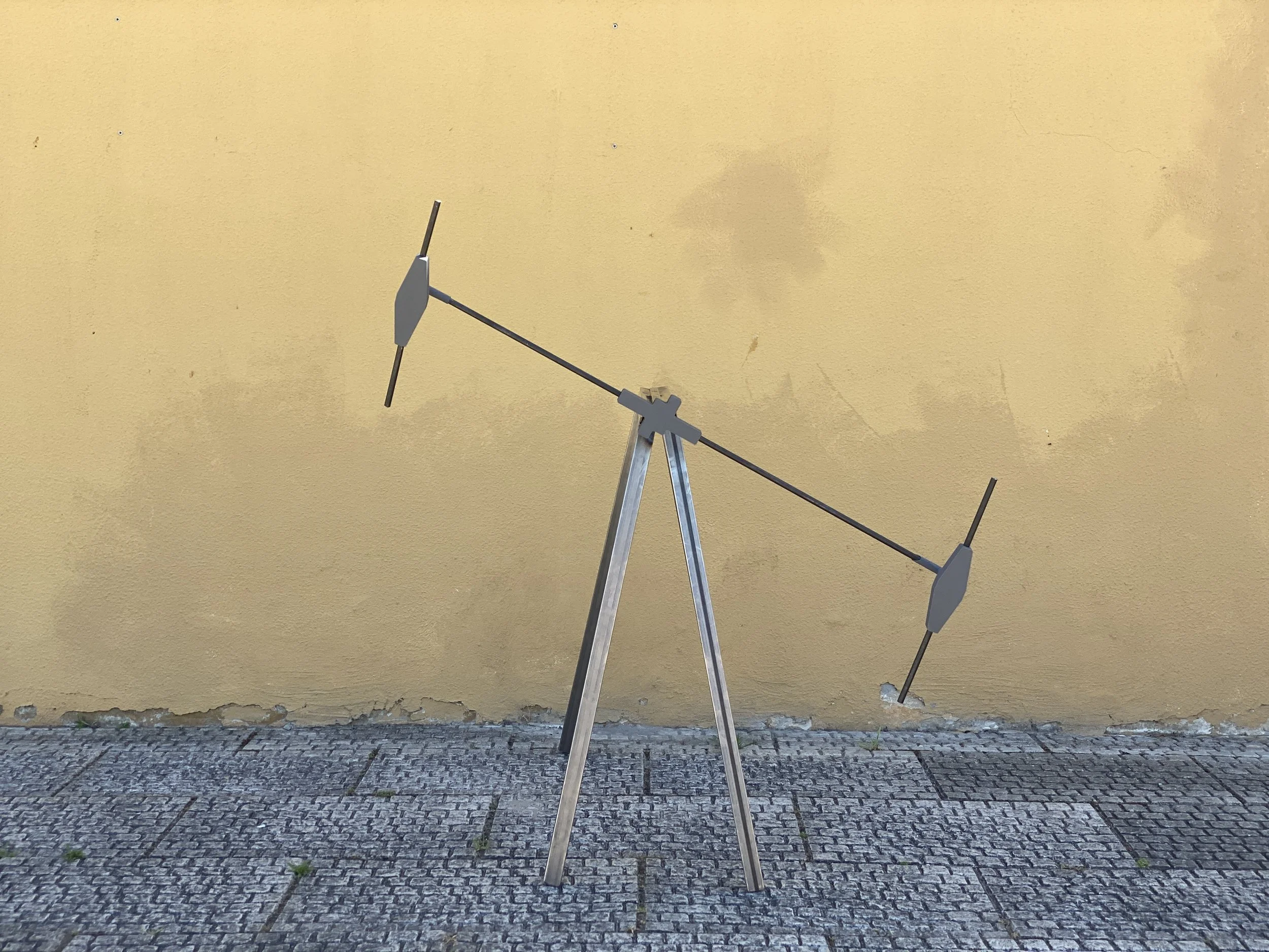 Uma das coisas que tive oportunidade de explorar durante a residência foi a criação de peças específicas que pudessem unir metais de forma precisa. Para isso, passei algum tempo a esboçar, medir e fazer desenhos 3D para impressão 3D. Pude fazer isto no FabLab em Lisboa, o que foi ótimo, tive dois dias para poder passear pela cidade enquanto esperava que as peças acabassem de ser impressas. Depois vem a parte divertida! Ver as coisas a começarem a compor-se. Estava a utilizar barras e tubos de aço para a estrutura. Depois, podemos realmente começar a testar, quais são os mecanismos? É possível adicionar mais peso aqui ou menos usando uma peça mais comprida ou mais curta. É mesmo pesado? Quando fiquei satisfeito com o movimento da peça, pude começar a tomar as decisões finais sobre as partes a cortar e a soldar. Foi com isto que acabei por ficar. O resultado de trabalhar com um plano flexível, mas também de deixar espaço para o erro, a experimentação e a intuição. A linguagem estética está relacionada com o trabalho que produzi durante a residência internacional há dois anos, mas um pouco mais refinada.