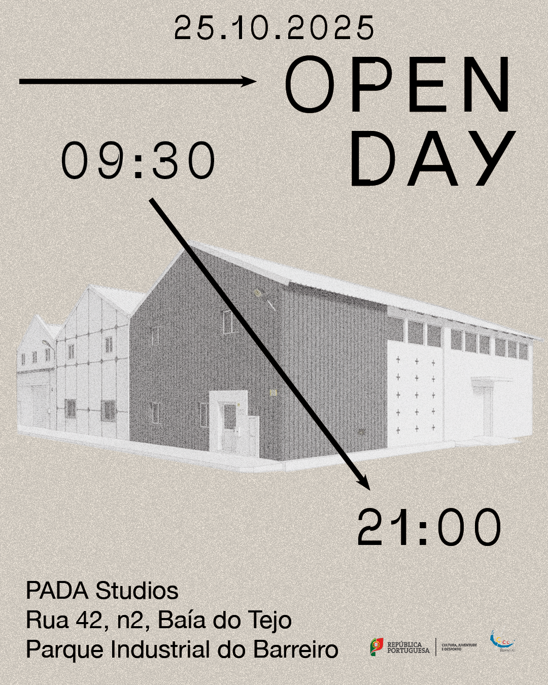 Este mês de outubro a PADA abre as portas dos seus ateliers, convidando os visitantes a conhecerem o projeto em maior profundidade. Num dia repleto de artistas e oradores convidados, preparámos um programa que começa com visitas aos ateliers e à galeria e um passeio guiado pelo Parque Industrial. À tarde, haverá uma mesa redonda sobre educação artística e uma segunda sobre apresentação e revisão de portefólio e orientação para o trabalho artístico. Haverá ainda uma visita guiada à exposição colectiva Bolsa Barreiro 2025, orientada pelo curador e pelos artistas participantes. O dia termina com um concerto da Sociedade Sonora da Saudade.